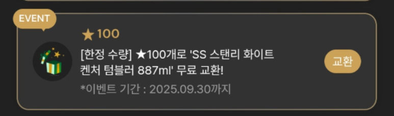 - 이벤트 이름: ★100개로 SS 스탠리 화이트 켄처 텀블러 887ml 교환