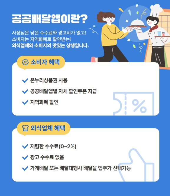 - 소비자는 지역화폐와 온누리상품권을 이용해 할인된 가격으로 배달음식을 주문할 수 있고,