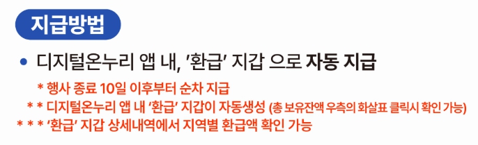 - 비수도권: 15만 원 사용 → 1.5만 원 환급