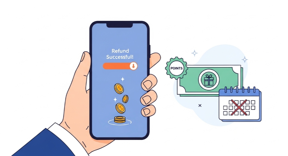 포인트 환불 선택 시 100% 전액 환불도 가능합니다.
