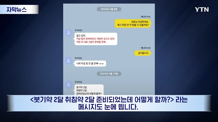 - 졸피뎀, 펜타닐 등 향정신성 주사 제공 시
