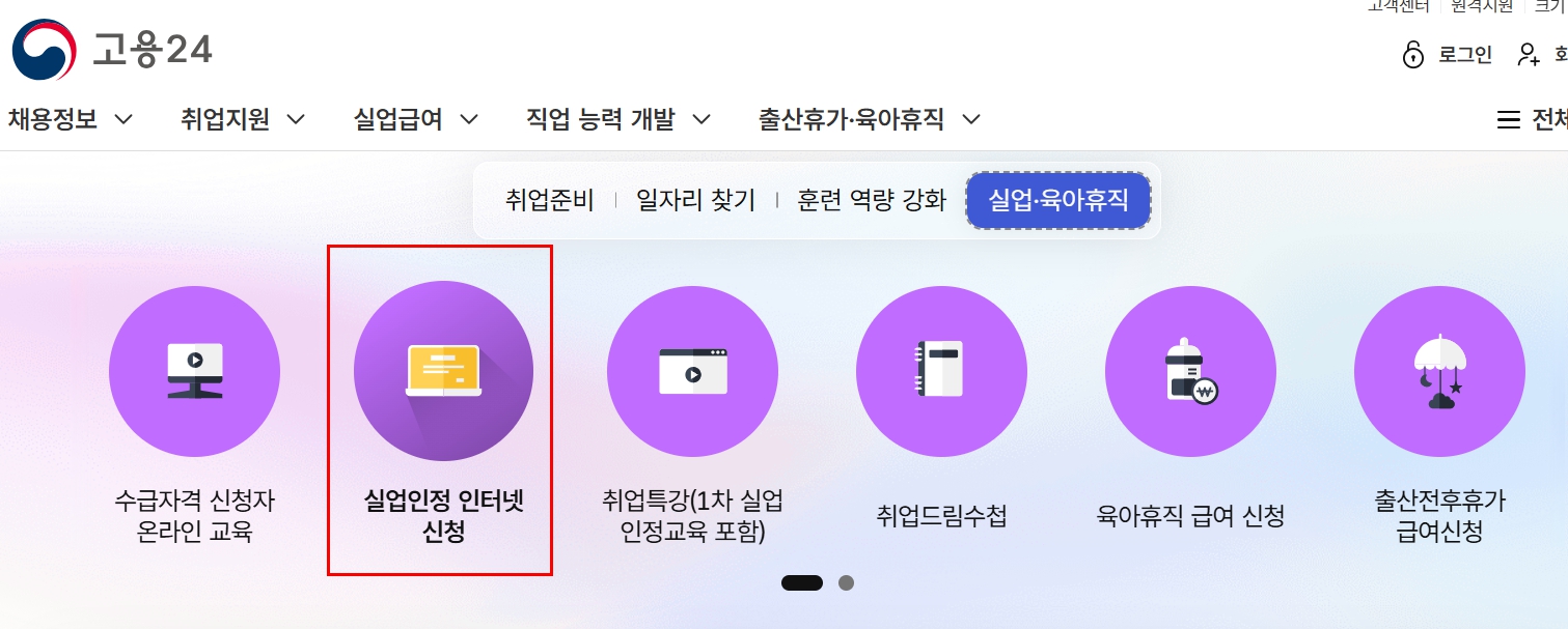 - 고용24 로그인 → 실업인정 → 인터넷 신청