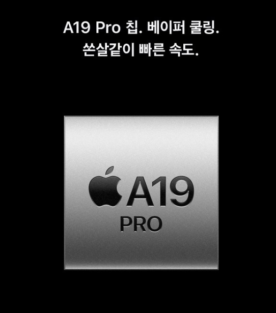 - 칩셋: A19 Pro (4nm) – 전작 대비 CPU·GPU 모두 성능 향상