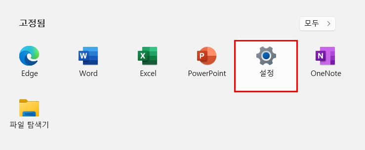 1. 시작 버튼 클릭 → 설정(톱니바퀴) 선택