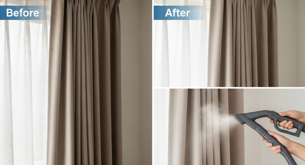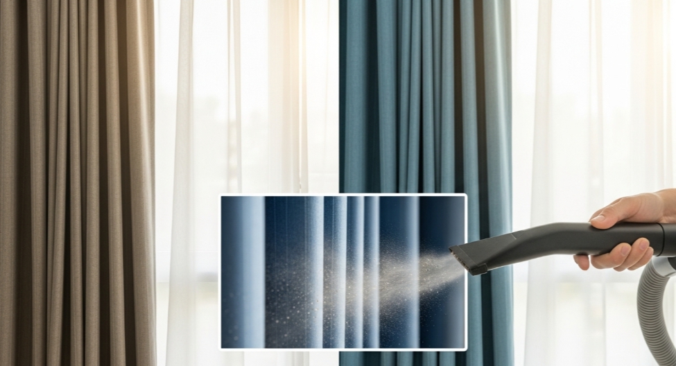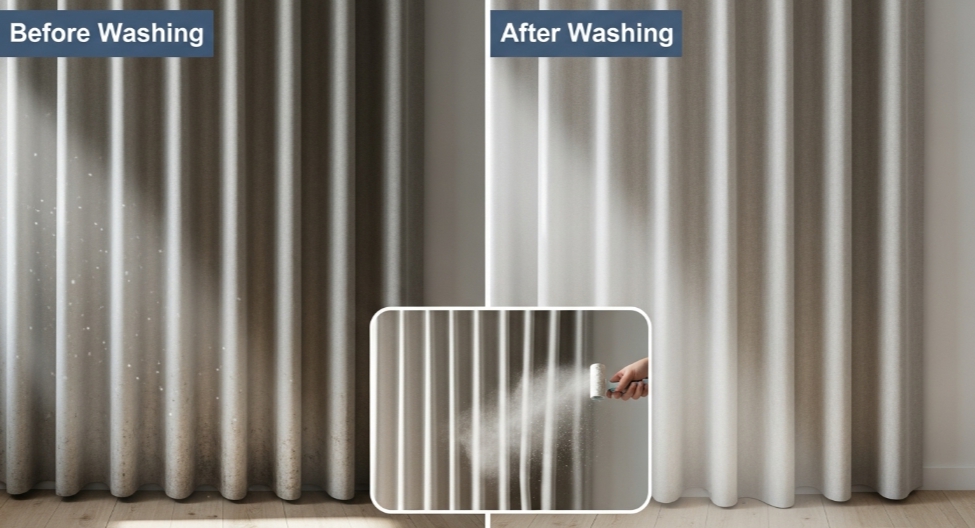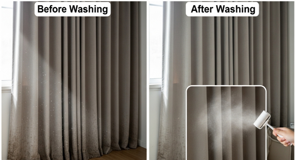 ✅ 포인트: 커튼의 주름 사이에 먼지가 특히 많아요. 꼭 펼쳐서 구석구석 털어주세요.