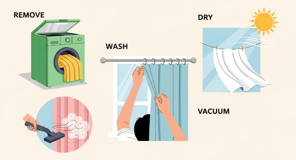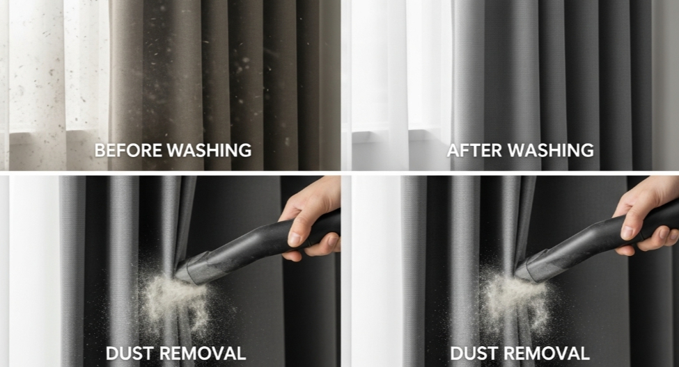 🧼 Step 1: 커튼 분리 전 먼지 제거는 필수!
