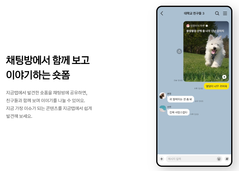 - 숏폼 영상 탭(지금탭) 신설 → 틱톡·인스타그램처럼 콘텐츠 소비 유도