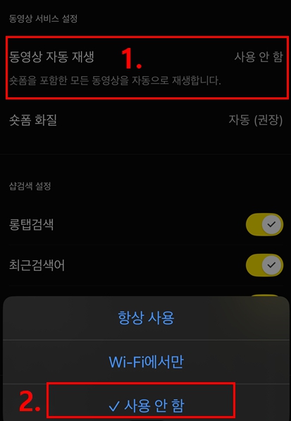 | 동영상 자동 재생 | 사용 안 함 ✅ |