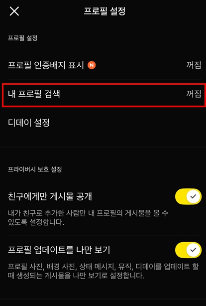 3️⃣ ‘내 프로필 검색 허용’ 반드시 OFF