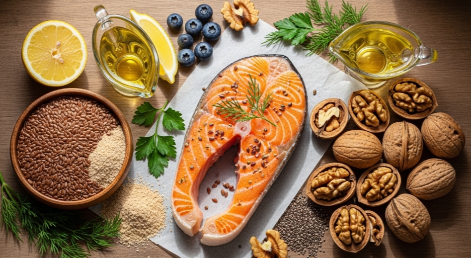 - 풍부한 식품: 연어, 아마씨, 호두