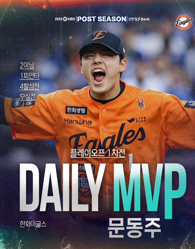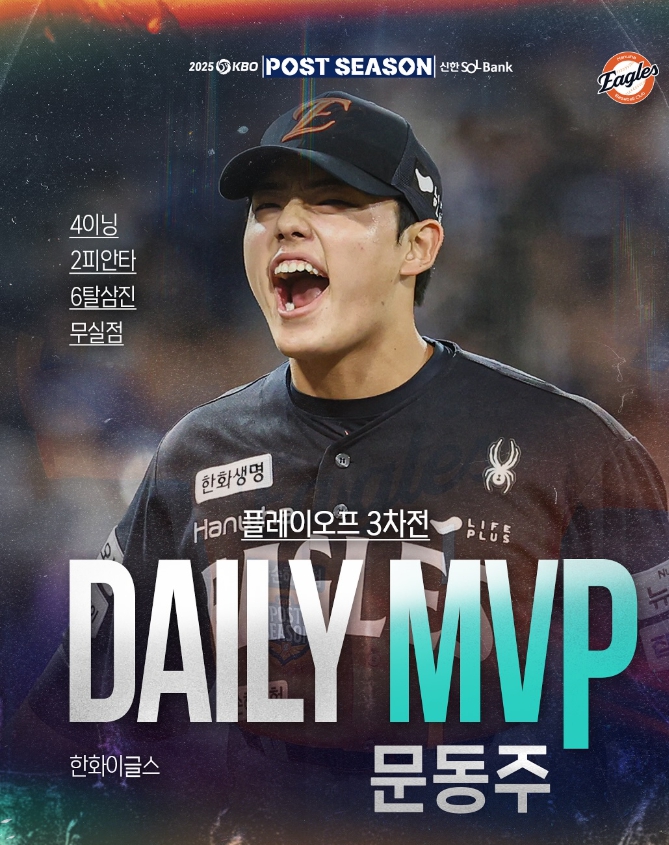 문동주는 1차전과 3차전에 나란히 구원 등판하며 총 6이닝을 무실점으로 막아내는 완벽한 피칭을 선보였고, 특히 3차전에서는 4이닝 무실점 6탈삼진을 기록하며 팀의 승리를 이끌었습니다.