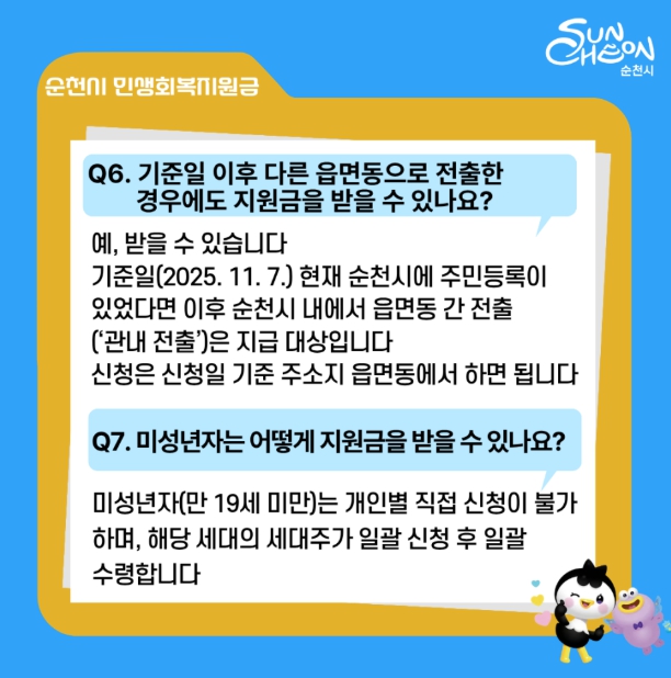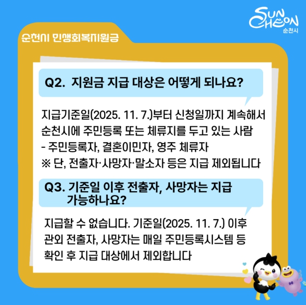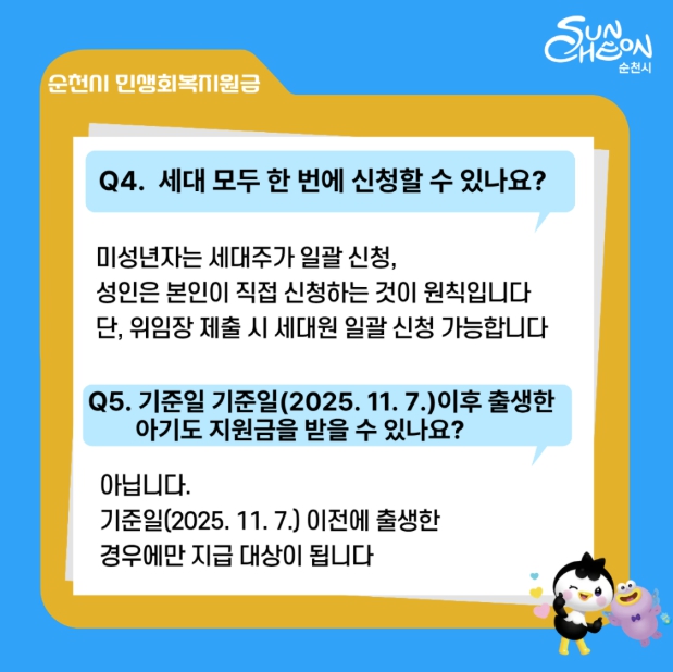 - 신청일까지 계속해서 순천시에 주민등록이 된 시민