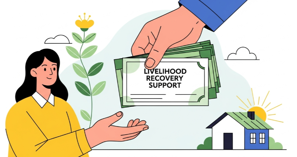 - 주소지 읍·면·동 주민센터 방문 → 신청서 작성 → 지원금 지급
