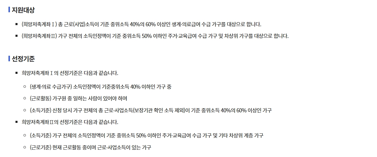 💡 기초생활 생계급여 수급자는 ‘희망저축계좌1’ 대상이며, 2는 주거급여·교육급여 또는 차상위 계층이 대상입니다.