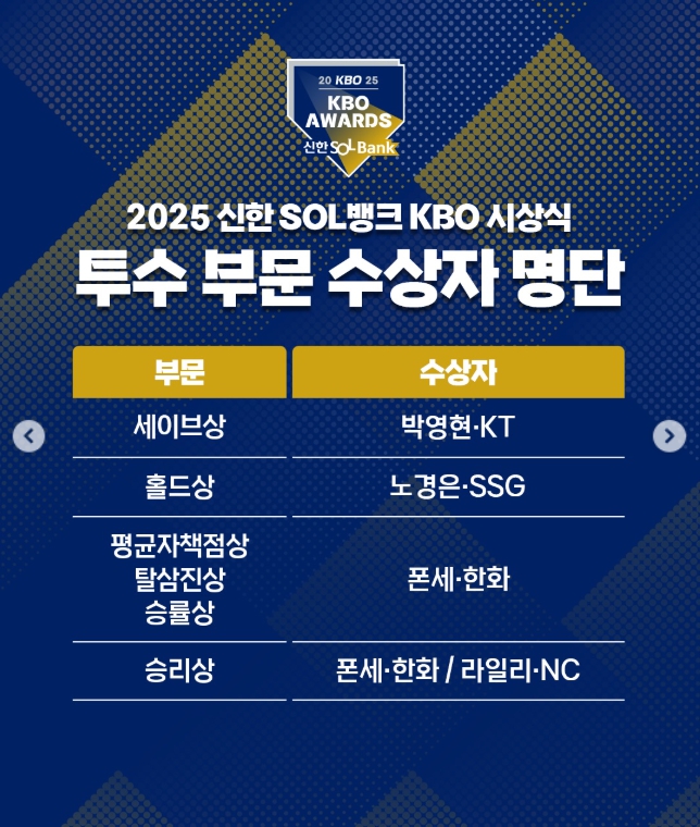 드디어 2025 KBO 시상식 수상자 명단 전체가 공개되었습니다!