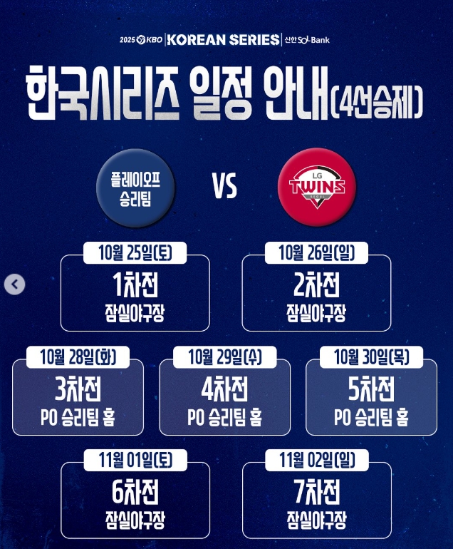 | 1~2차전 | 10/25~26 | 잠실 (LG 홈) |