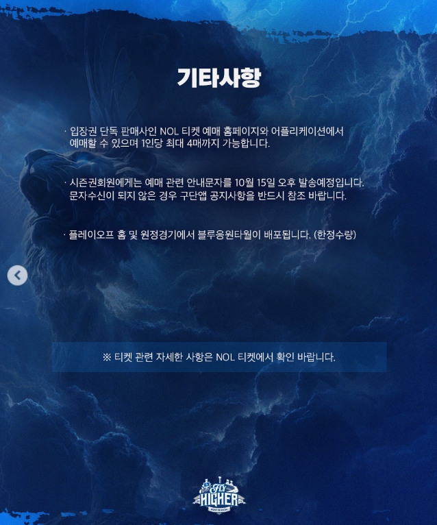 - 10월 16일(목): 3차전~4차전 순서로 예매