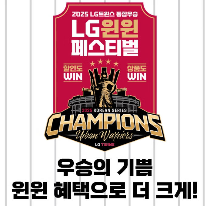LG트윈스의 2025년 KBO리그 통합 우승을 기념해, 다양한 브랜드에서 LG우승할인 이벤트를 본격 시작했습니다.이번 시즌 정규리그와 한국시리즈를 모두 제패하며 ‘통합 우승’에 성공한 LG트윈스